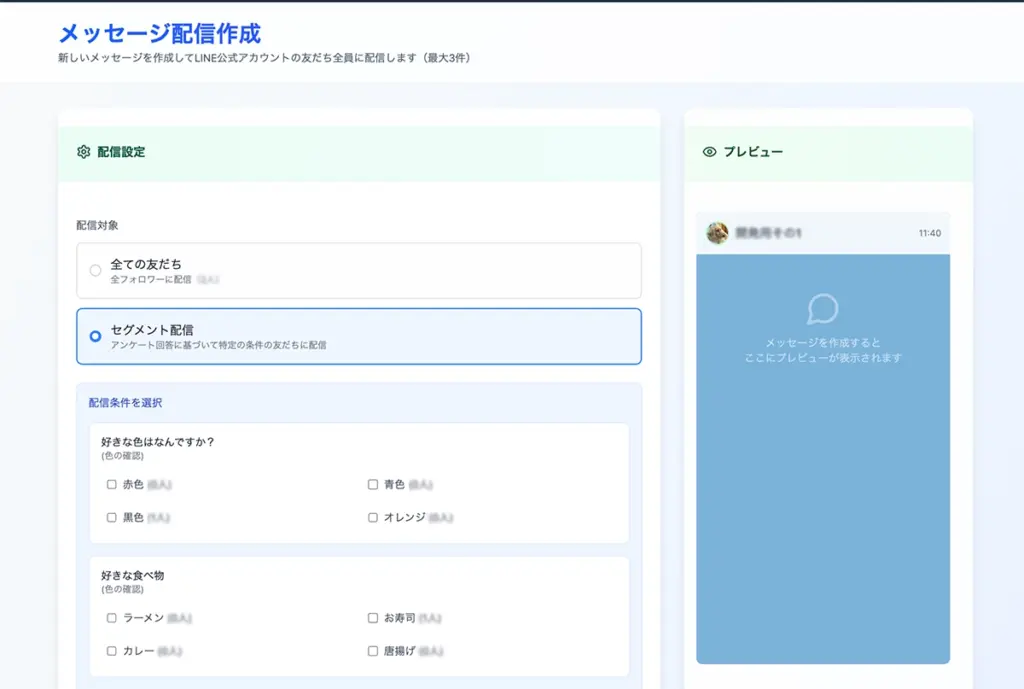 メッセージ配信は「一斉送信」「セグメント送信」に大きく分かれます。