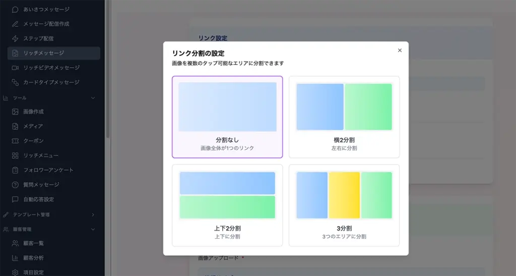 リッチメッセージは、画像にリンクを設定して配信できる機能です。